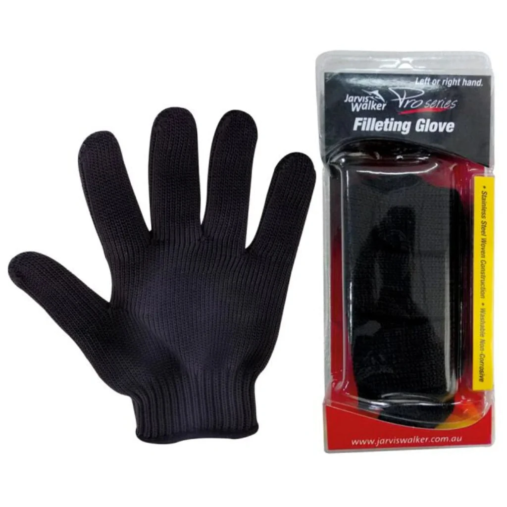 The Jarvis Walker Pro Fillet Glove is a stainless steel woven glove that will protect your hand and fingers whilst filleting a catch. One glove per pack