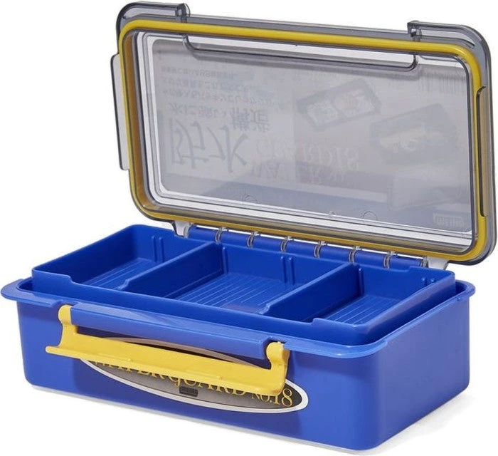 The Meiho Water Guard 18 case is a premium quality water resistant tackle tray, perfect for storing a wide range of fishing tackles in a compact case. Fitted with an O-ring seal and large front latch to keep the water out, it also features a removable tackle tray with dividers.Â